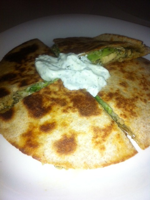 mix all components of the sauce in a small bowl until smooth, dollop on top of quesadilla and serve.