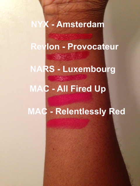 Here are shades of red (raspberry) of the new lips I acquired for birthday from those who know me best.